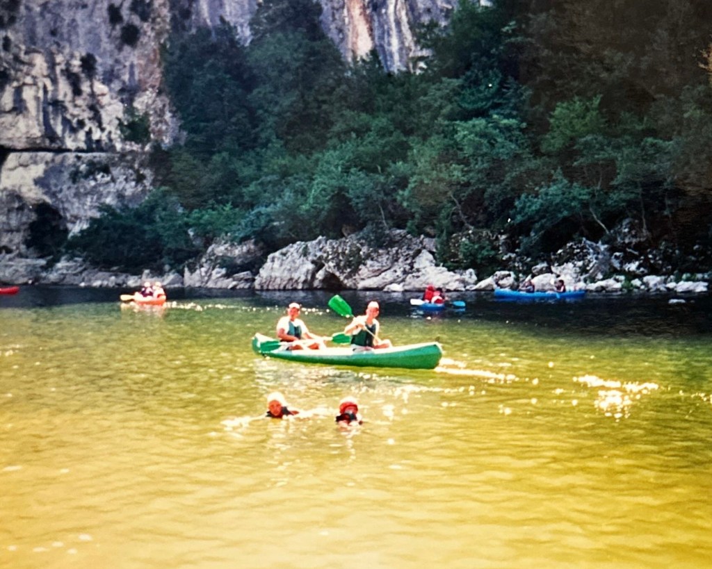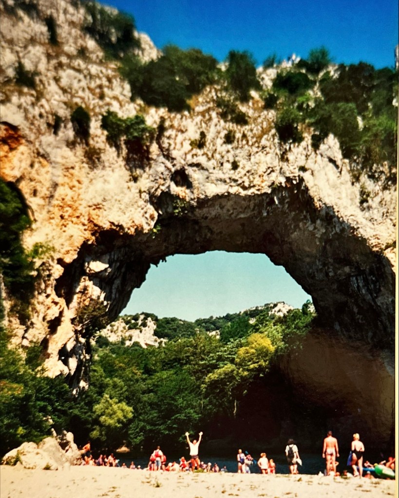 Nou, dat viel dus hartstikke mee! Hartstikke tof juist. De stroomversnellingen ging af en toe duizelig snel, maar dat was wel kicken. Eigenlijk jammer dat ik er op de laatste dag achter de fun van het kanoën kom. Het onder de Pont D’Arc door kanoën was ook heel indrukwekkend. Onderweg een paar keer gestopt voor wat drinken, foto’s schieten en verkoeling in de schaduw.