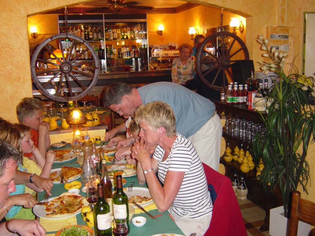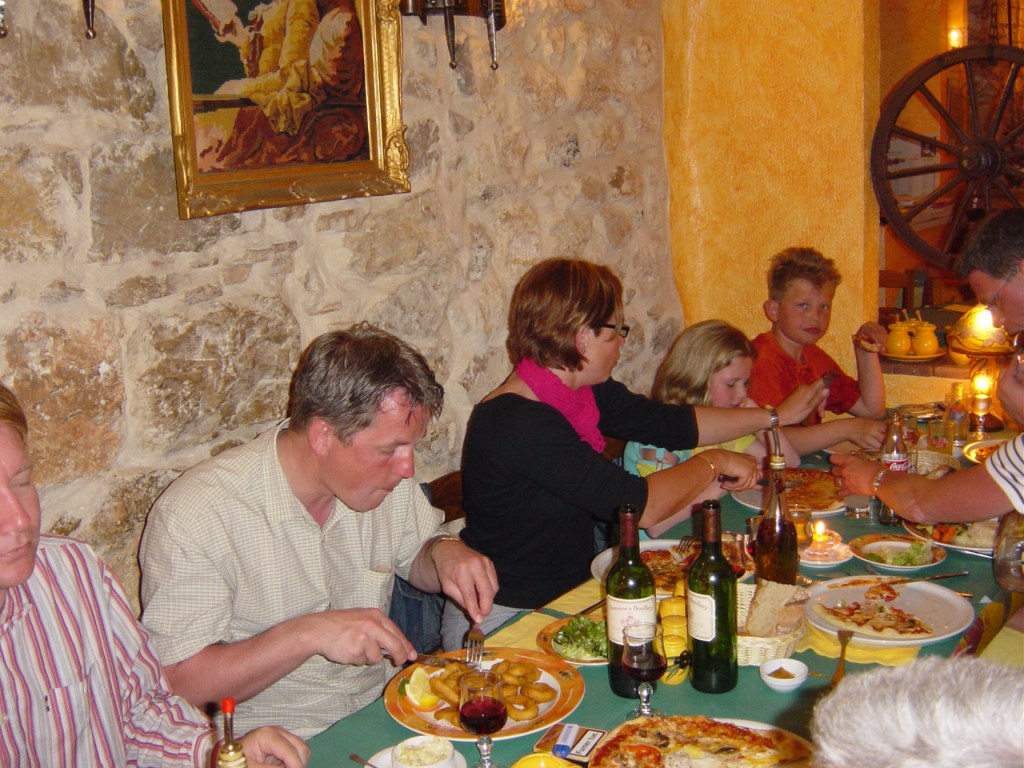 Verder heerlijk op het dakterras gezeten, en ‘s avonds in de pizzeria verderop gegeten. Jasper liep hier een (dure?) lamp omver, maar dit was zonder opzet. De eigenaar zei dat hij verzekerd was, maar misschien was hij ook blij. Zo mooi vond ik die lamp ook niet.