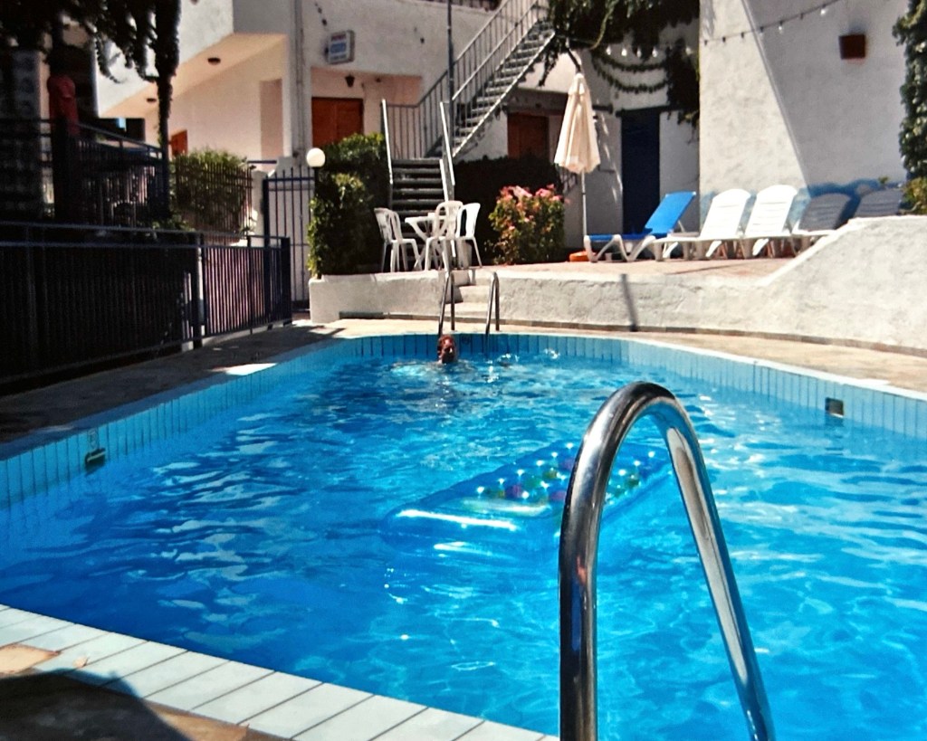 Edo had het briljante idee om luchtbedjes te kopen en in de zee te gaan liggen dobberen. De bedjes waren al snel aangeschaft en minder snel opgeblazen. Uiteindelijk, eenmaal in zee, hebben we ruim anderhalf uur in zee liggen dobberen, en hebben dit later in het zwembad bij ons appartement voortgezet. Heerlijk gerelaxt en gezwommen. De zon was iets te fel en heeft mij goed te pakken genomen.