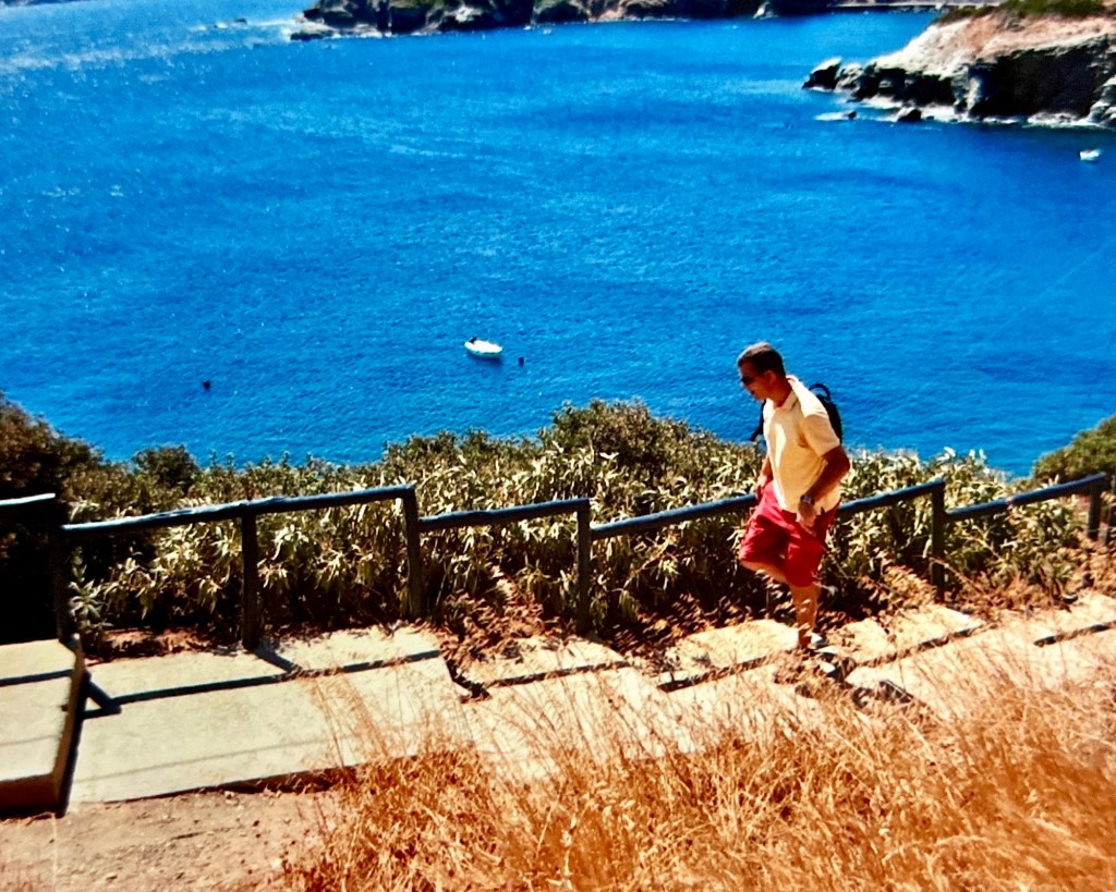 Vandaag iets later dan gewoonlijk uit bed gekomen, maar al snel waren we op pad. Dit keer gingen we op zoek naar een strandje in de westelijke richting van Agia Pelagia. Het was een eind wandelen in de zinderende hitte, maar uiteindelijk kwamen we aan bij een klein kiezelstrandje. Hier was het echter zo druk dat we besloten dezelfde wandeling weer terug te gaan.