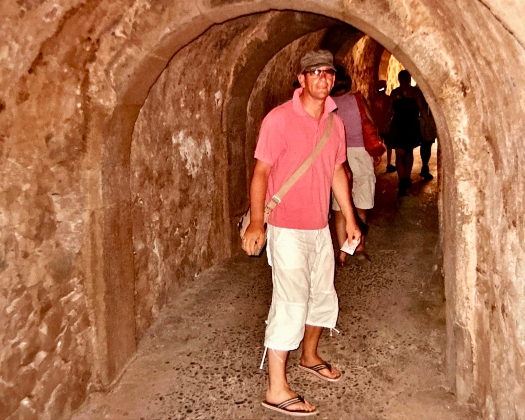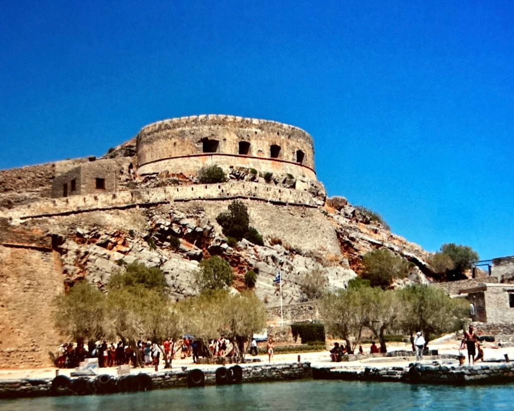 Het plaatsje Plaka licht recht tegenover het eiland Spinalonga. Hier hebben we een boottrip naar het eiland genomen. Van het jaar 1903 tot aan het jaar 1957 werden hier de lepralijders van Kreta gedumpt. Op het eiland hing een weeïge, zoete kokosachtige geur. Waar deze vandaan kwam weet ik niet. Wellicht van de cactusvruchten, ofzo. De zon was weer heel fel, dus renden we van schaduw naar schaduw. Mijn nek lijkt nu een beetje aan de zon te wennen, maar het in de zon staan op dit tijdstip van de dag is niet echt lekker.