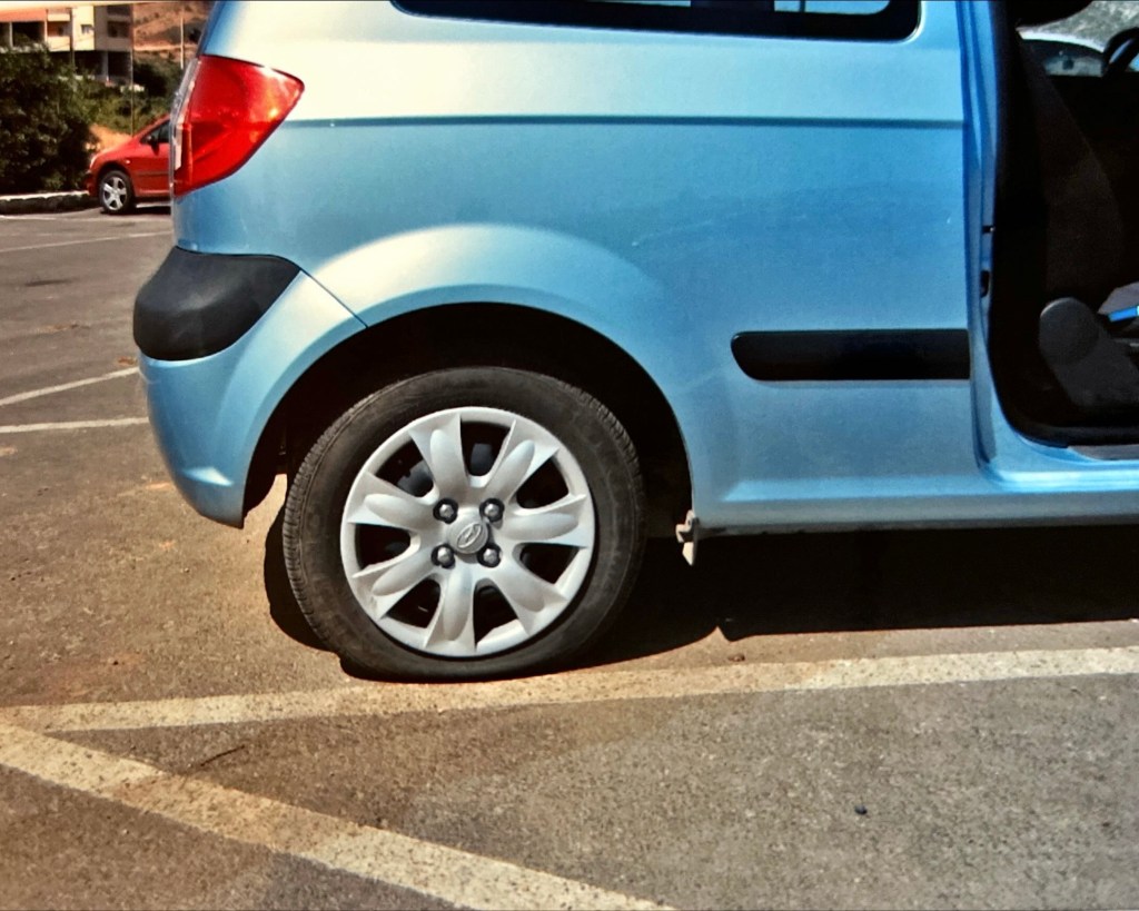 Bij de huurauto aangekomen was de rechter achterband zo goed als leeg. We belden naar het verhuurbedrijf en deze verwees ons door naar de dichtstbijzijnde tankstation, waar de achterband gemaakt kon worden (wel verzekerd). Wij dus met maar drie volle autobanden door het dorp naar het tankstation gereden. Hier aangekomen werd ons verteld dat het door hen geregeld ging worden. Er werd een pomp gepakt en de lege autoband werd opgepompt. Dit deed het ‘m.