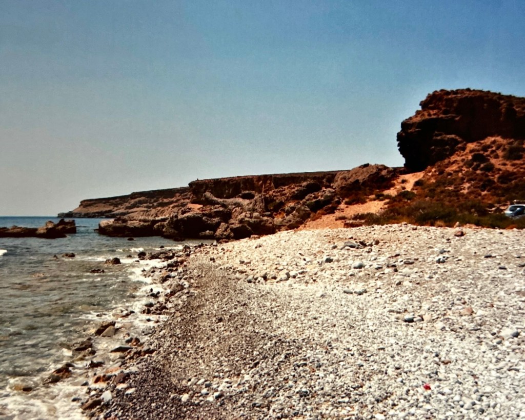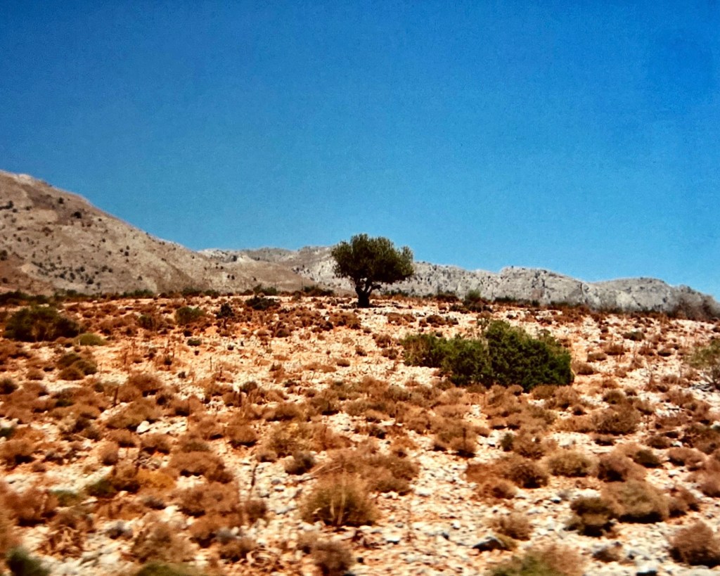 Dus na het bezoek aan het tankstation reden we al rap op de snelweg richting Rethymnon om vervolgens bij Vrisses naar het zuiden te rijden. Dit was wel een bijzondere rit door het dorre berglandschap van Kreta, waar we door veel kleine dorpjes reden. De ingang van de Imbroskloof konden we niet vinden, dus reden we door tot aan de zuidkust van het eiland.