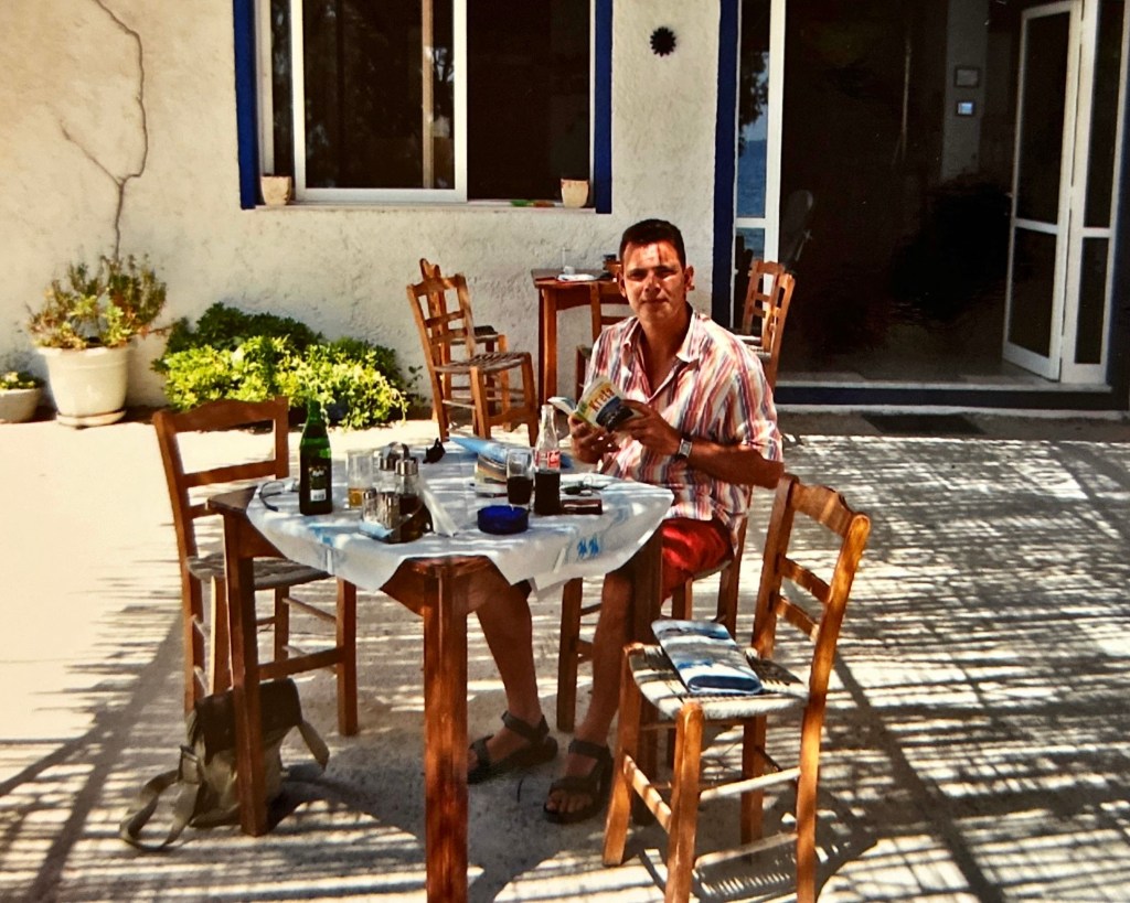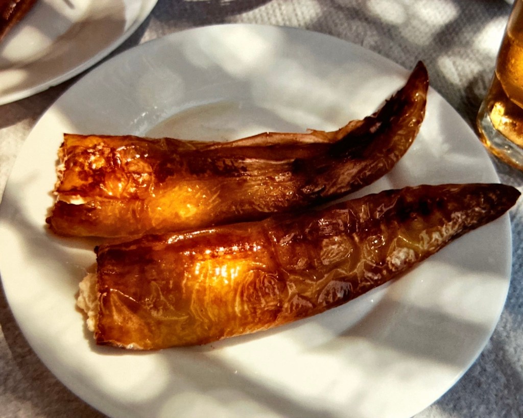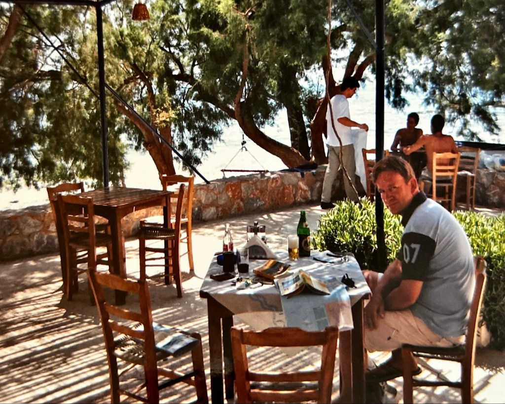 Hier (de plaatsnaam is me ontschoten), aan de kust hebben we heerlijk gegeten. Op een heel bijzonder en idyllisch plekje. We hebben met feta gevulde pepers gegeten, en deze waren heerlijk!