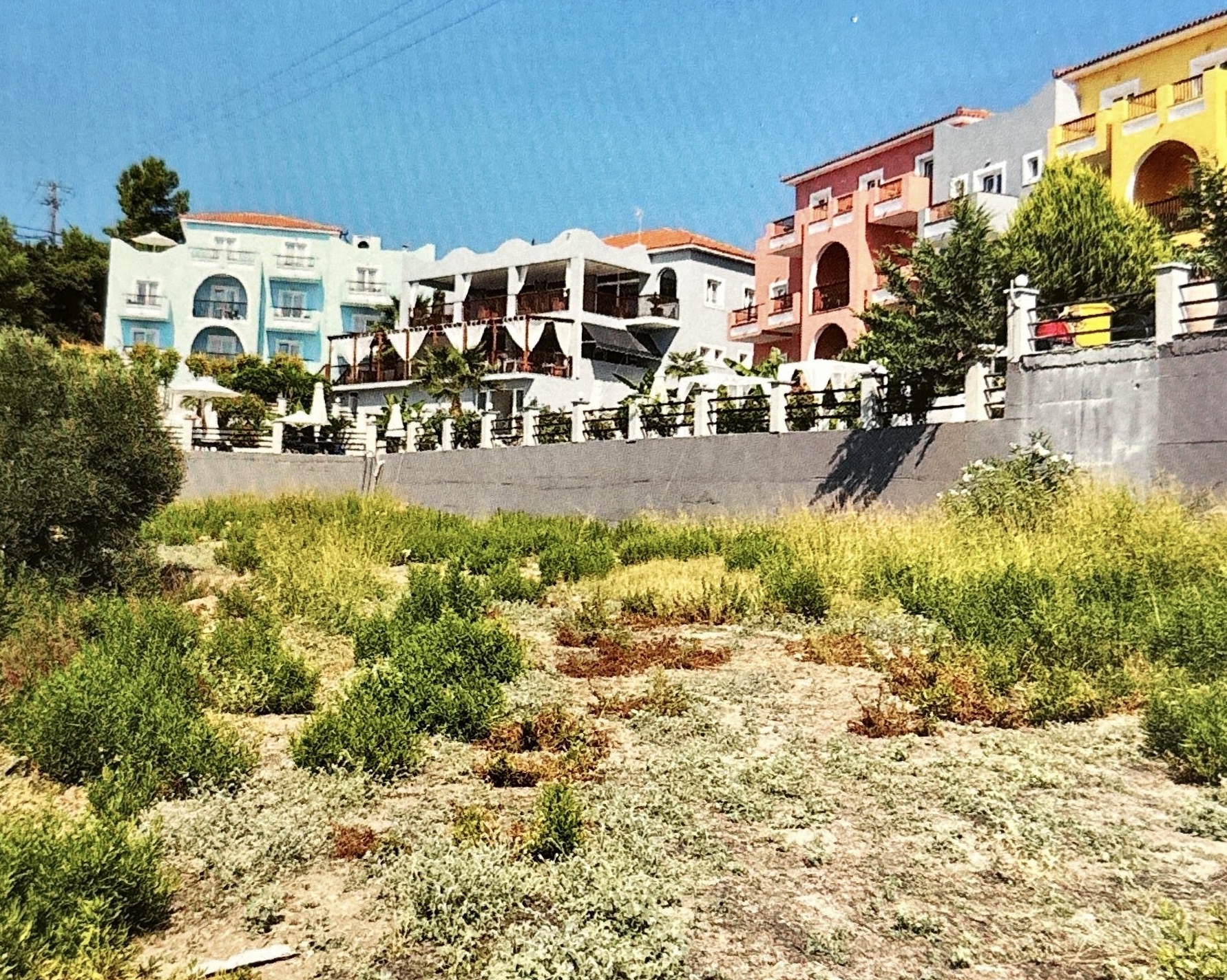 Bij terugkomt van de poolbar, is moeder -vanzelfsprekend, aan het woord. Ze wilde graag naar het strandje lopen, maar haar hoofdpijn is teruggekomen. Die van mij nu ook. Ondanks haar hoofdpijn tettert ze maar door en gaat ze dan toch met de dochter het pad naar het strandje, lager gelegen, bewandelen. Ik blijf nu zeker bij het zwembad zitten, want ik wil, en ik móet, haar ervaring hierover horen. Het pad is namelijk geen wandelpad. In een zeer steile gang naar beneden, loop je over losse keien, langs gevaarlijke prikkelbosjes.