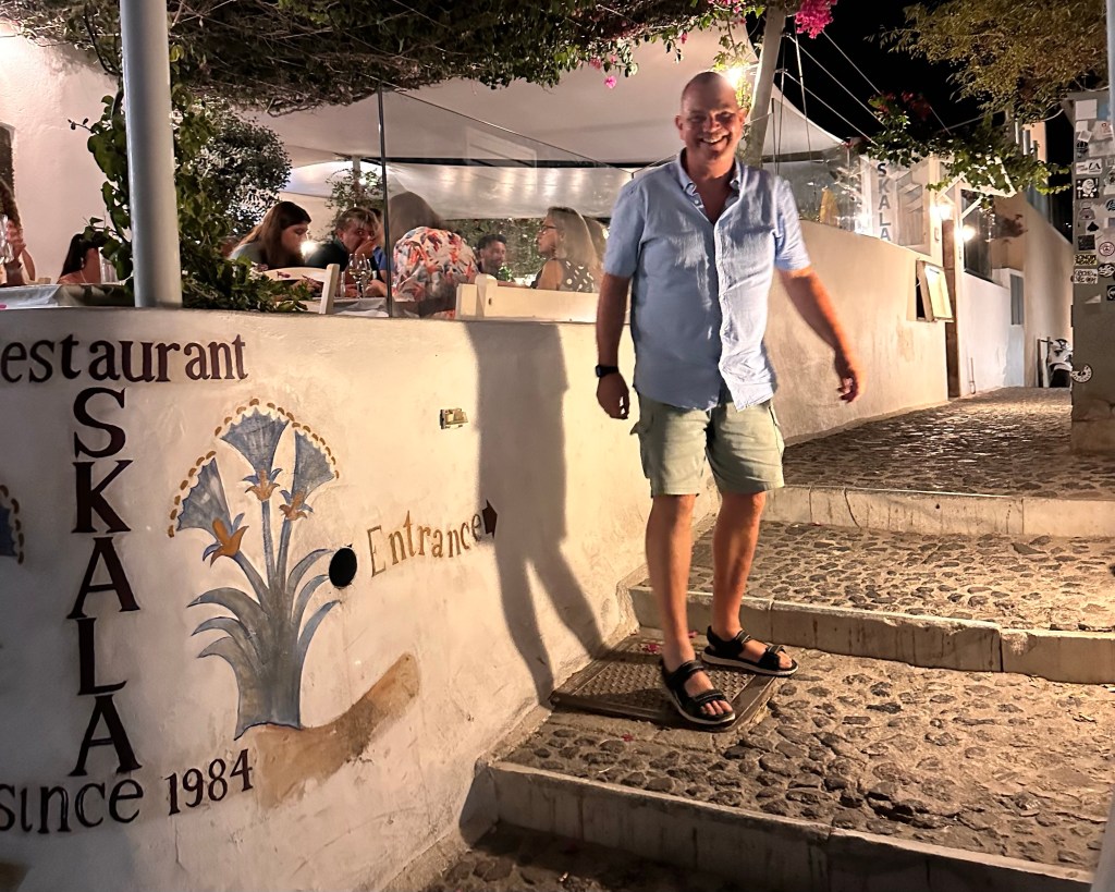 De lunch hebben we genoten bij Skala, waar we Griekse salade hebben genomen, en de beslissing hebben gemaakt om daar in de avond ook te gaan uiteten. De ambiance was er zo dat we die keuze zonder twijfel hebben gemaakt. Op de terugweg hebben we de nodige souveniers ingeslagen, en de rest van de middag hebben we rondom en vlakbij bij ons appartement doorgebracht, om vervolgens later tijdens de zonsondergang weer naar het restaurant terug te lopen. Lang verhaal, kort: Wederom hebben we heerlijk gegeten en nu zitten we gelukzalig voor ons appartement te genieten van de zwoele, zomerse vrijdagavond.