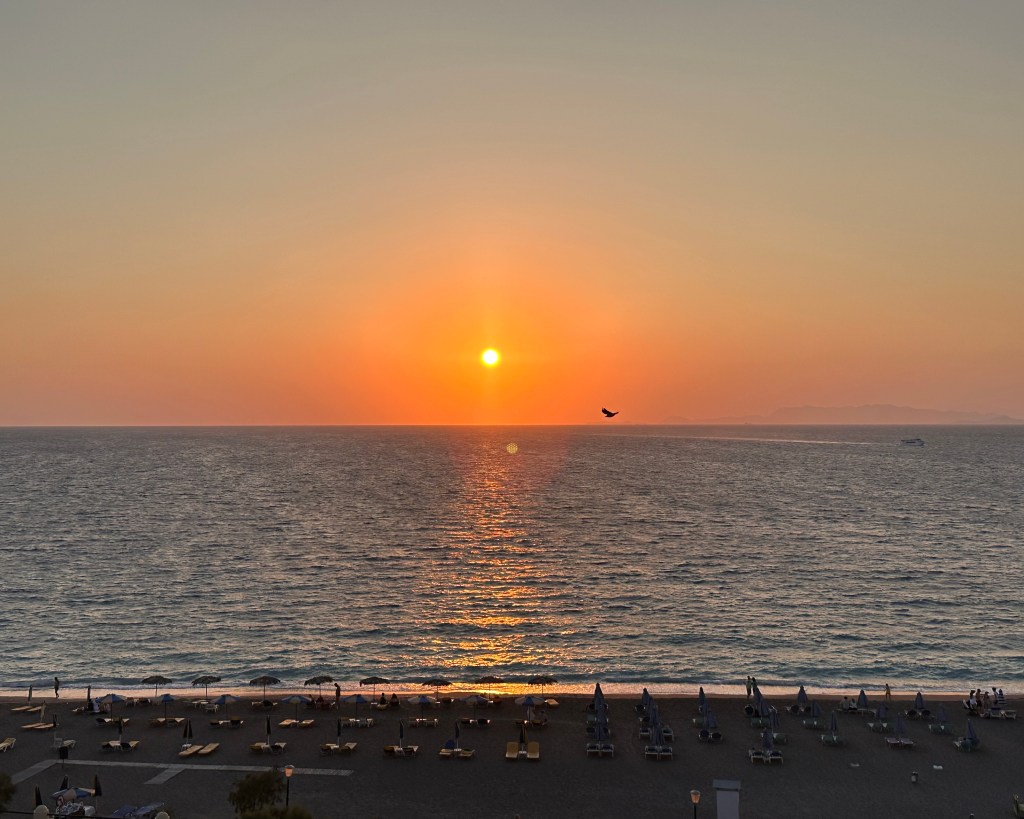 Vanmorgen eindelijk weer eens zonder een wekker wakker geworden. Dat is voor mij toch wel het ultieme vakantiegevoel. Omdat we gisteravond laat (in het donker) op het eiland aankwamen was ik wel nieuwsgierig naar het uitzicht, dus stond ik toch bijtijds uit bed. Ons uitzicht viel me niet tegen en kwam aardig overeen met de foto’s die ik eerder online en in brochures had gezien.