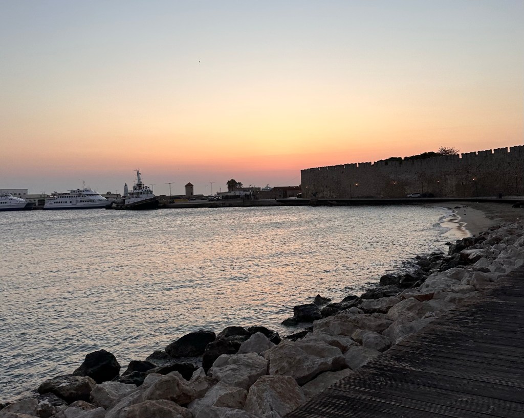 Ik had het plan om een kleine vijf kilometer te gaan hardlopen. Een rondje richting de haven van Rhodos-stad en dan met een kleine omweg weer terug naar het hotel. Hiermee moet de vijf kilometer wel gehaald kunnen worden. Echter op vakantie gaan de dingen altijd iets anders dan normaal. Ik dacht richting de kust te rennen, maar ik ging landinwaarts. Ik herkende een houten bruggetje, waar we gisteren over gewandeld waren, en dit was niet goed. Keren en verder rennen.
