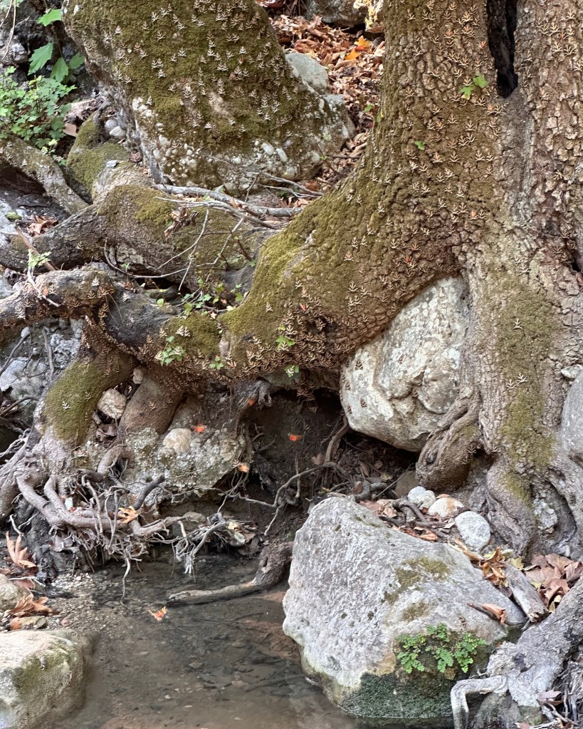 Na een rit van een half uur kwamen we op de plaats van bestemming. Een parkeerplaats was snel gevonden en de ingang van de vallei ook. Nadat we onze entreekaart hadden betaald, was het naar boven wandelen via een aangelegde route naar boven. In het begin was het minder vlinder, maar uiteindelijk liepen we door een zwerm van fladderende vlinders. Bijzonder.