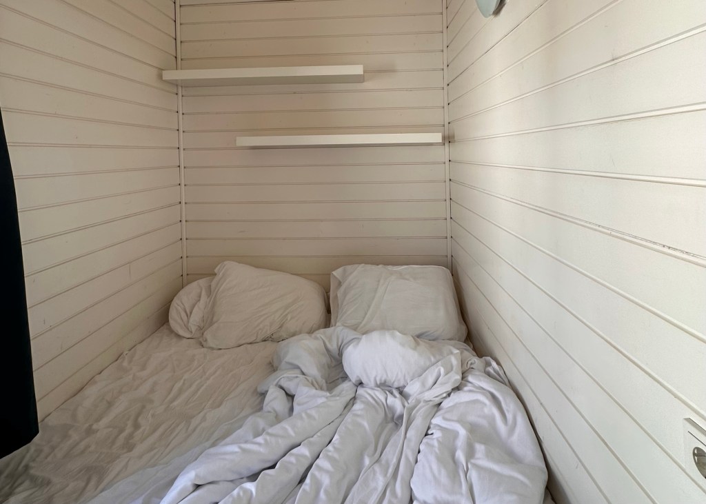 Vandaag geen wekker die ons mocht wekken, want op zondag slapen we uit. Niet dat we heel lang in bed hebben gelegen. Een bed, anders dan je eigen ligt toch minder vertrouwd, of lekker, en het ontbijt werd ook tussen 09:00- en 09:30 uur bezorgd worden, dus ik stond op tijd onder de douche.