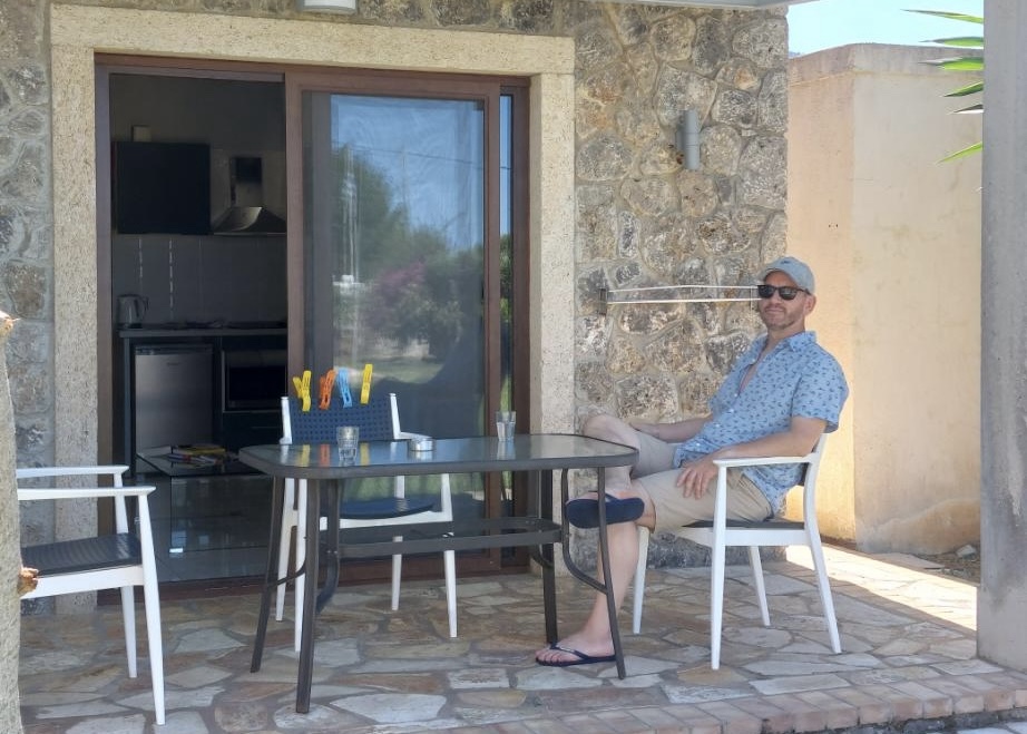 Nu zitten we, muskietenvrij, op ons terras bij ons huisje aan de wijn om hierna vermoeid en zeker voldaan een volle nacht te gaan slapen.