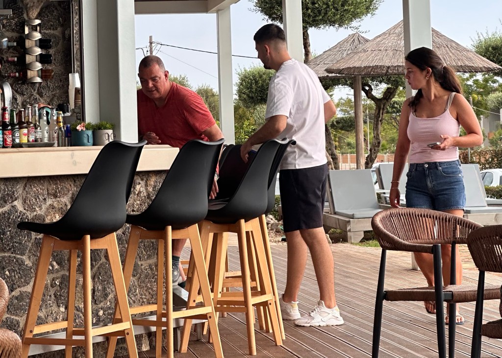 Na ons religieuze bezoek zijn we verder gereden naar een andere toeristische trekpleister: het uitkijkpunt bij Afionas. Hier heb je een fantastisch uitzicht. We hebben er in de middag geluncht bij Porto Termoni Restaurant, een bijzonder restaurant met ook een heel mooi uitzicht. Hier hebben we Griekse salade gegeten en als toetje nam Edo de Griekse yoghurt met honing en walnoten en ik een sinaasappeltaartje met ijs en kumquatsiroop. We hebben hier geweldig gegeten. Na de lunch was het weer terugrijden naar ons plaatselijke thuis, waar we nog even bij het zwembad hebben gelegen.