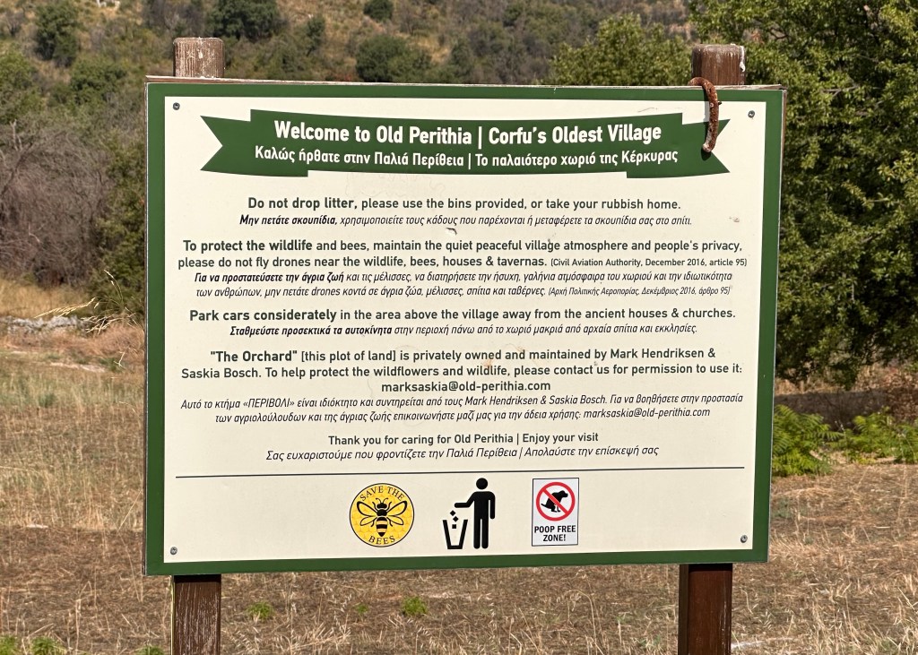 Na het ontbijt bij het zwembad vertrokken we naar een verlaten dorp op Corfu: Old Perithia. Een dorp zonder haast, en zonder haastige mensen ook, want de meesten zijn al jaren geleden vertrokken. Je loopt langs half vergane ruïnes, met hier en daar een taverna waar men elkaar probeert weg te concurreren door bezoekers naar hun terras te lokken. Wanneer je één bouwval hebt gezien, heb je het hele dorp wel gezien. Na een paar korte fotoshoots vertrokken we naar de hoogste berg van het eiland.