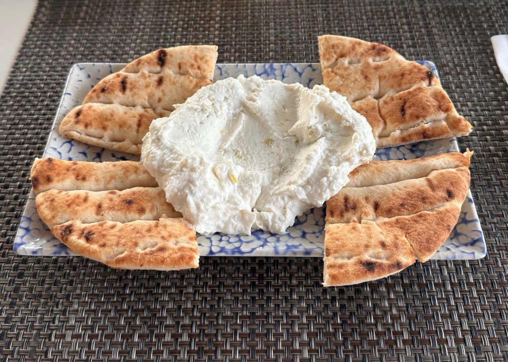 Tegen de avond hebben we ons opgefrist en zijn we in Acharavi uit eten geweest. Dit keer bij Woody’s, vlakbij het restaurant van gisteren, en gelukkig zonder wolkbreuk. We hebben weer lekker gegeten. Ik had opnieuw tirosalade (deze keer met een zurige smaak) en kipfilet in blauwekaassaus. De smaak was prima, maar de presentatie viel tegen: een onogelijke grijze saus die deed denken aan pus met stopverf. Daarbij lag mijn kipfilet volledig verstopt onder deze brei. Ik hou er niet van wanneer ik naar mijn vlees moet zoeken.