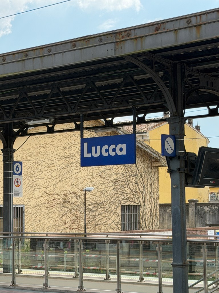 Vandaag werden we wederom op tijd wakker. Voordat we naar de ontbijtzaal gingen, pakten we alvast een deel van de koffers in, zodat we na het ontbijt alleen nog de toilettas hoefden te vullen en de koffers konden dichtritsen. Dat deden we dan ook, na een uitgebreid en heerlijk ontbijt. Even na 11:30 uur checkten we uit en wandelden in het zonnetje naar het station, waar de trein naar Lucca op ons wachtte.