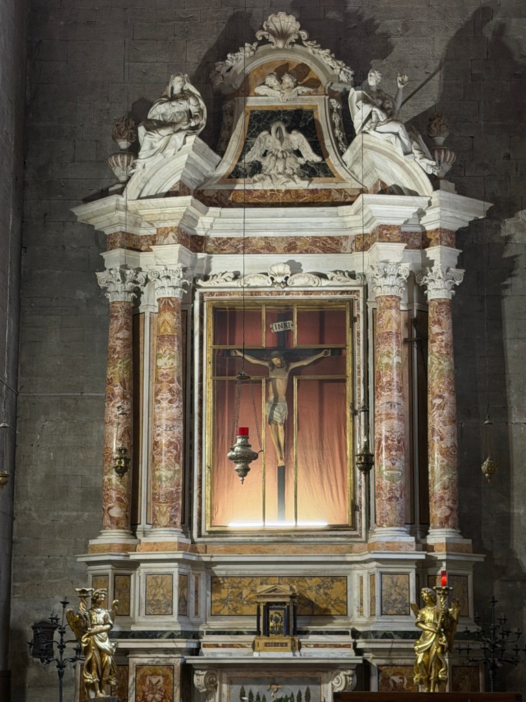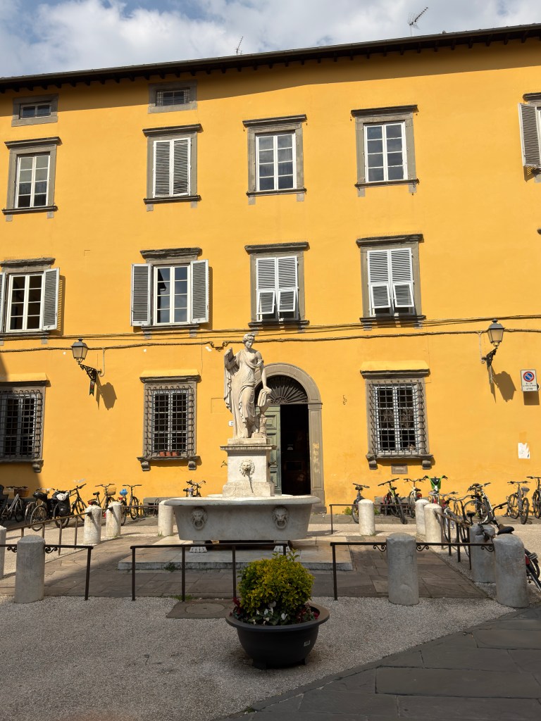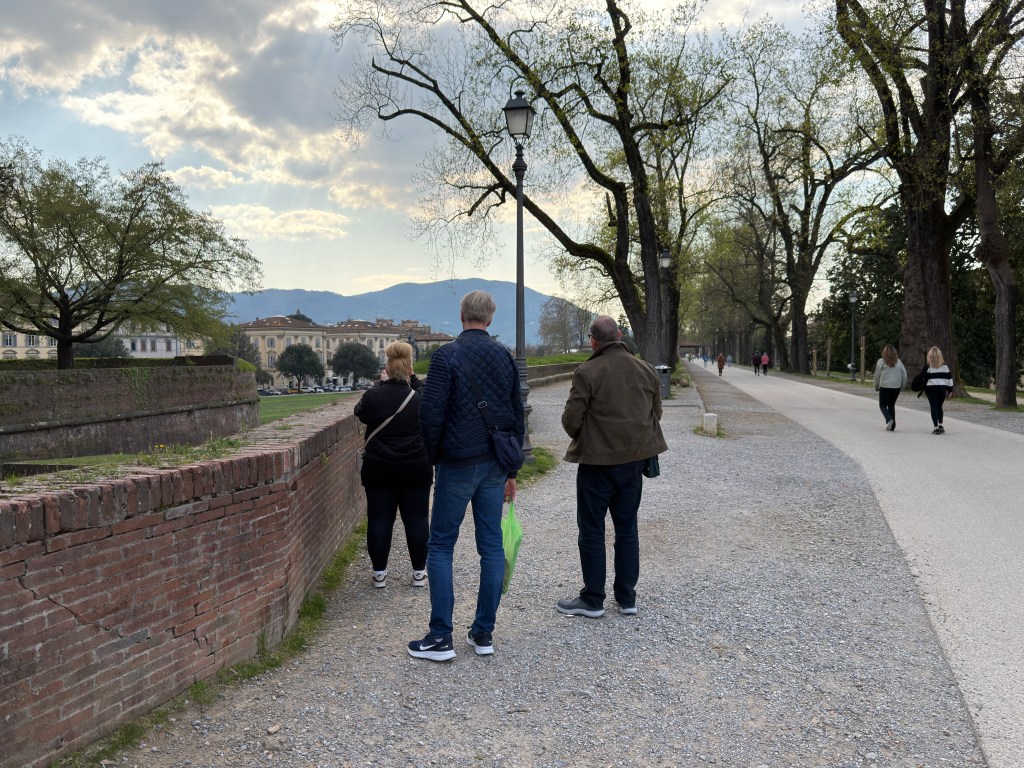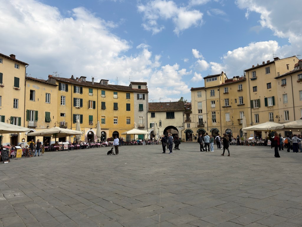 Nog geen half uur later kwamen we aan in het geheel ommuurde stadje. Lucca is een van de rijkste steden van Noord-Italië, maar dat merk je nauwelijks aan de uitstraling; het stadje doet oud en bescheiden aan en heeft, naar mijn idee, om de 150 meter een plein met een kerk. Na een wandeling en een paar kerkbezoekjes belandden we op het Piazza dell’Anfiteatro, waar we genoten van een heerlijke lunch.